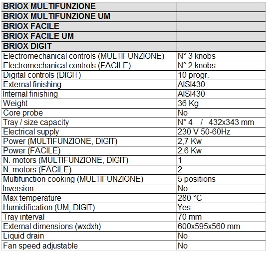 Convection oven BRIOTEK BRIOX MULTIFUNZIONE Double click on above image to view full picture